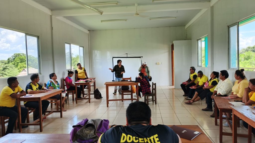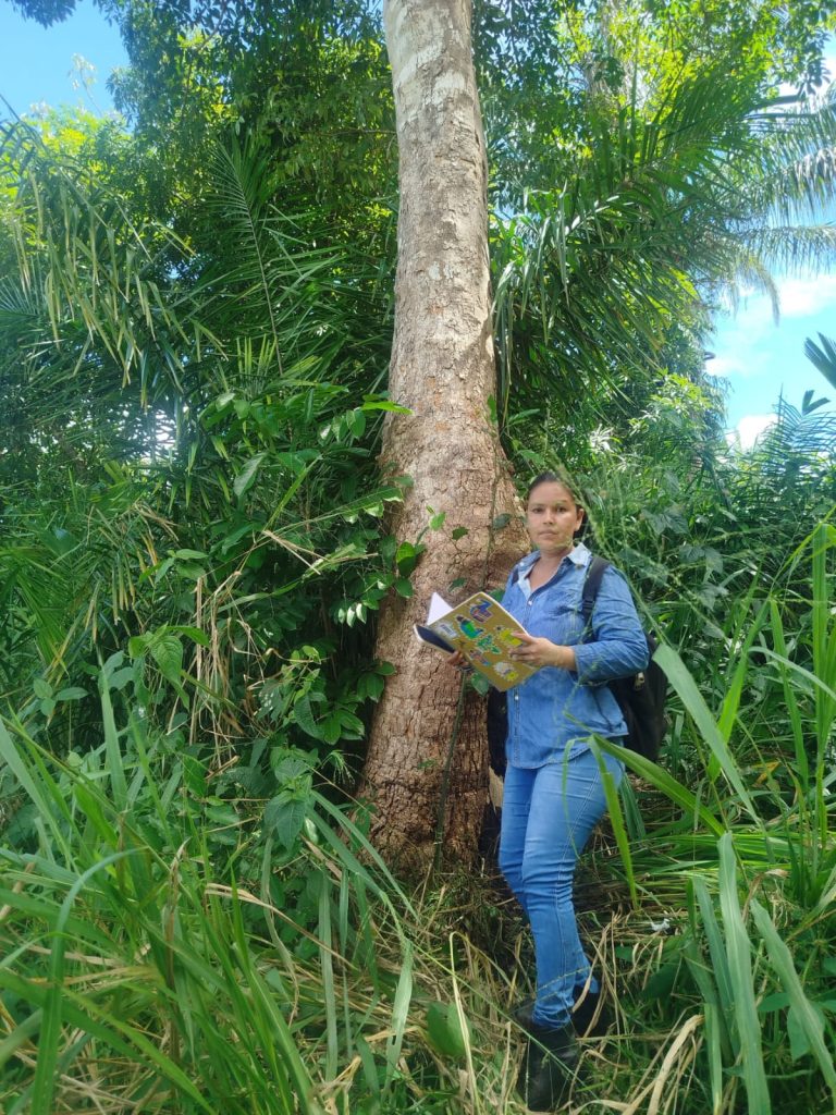 Zaida Gamarra, técnica agroforestal del Instituto Tecnológico Superior Amazónico KEMTY (Kavineño, Esse Ejja, Machineri, Tacana, Yaminawa), lideró la identificación de características morfológicas clave de las especies presentes en los Bosques Educativos, así como la sistematización de sus usos y beneficios.