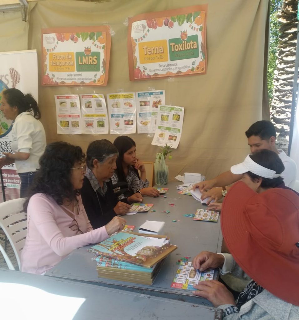 Consumidores de la feria aprenden jugando sobre plaguicidas y su impacto en la salud. Imagen de Rocío Zubieta