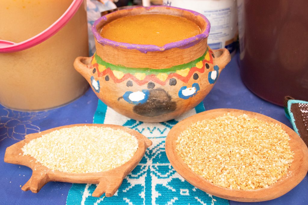 La feria reunió a productoras y productores locales que expusieron y compartieron la tradicional Chicha de maíz (kagüi), bebida ancestral que simboliza hospitalidad, trabajo colectivo y celebración comunitaria. Cada stand reflejó el conocimiento transmitido de generación en generación, destacando la importancia del maíz como base de la alimentación y la cultura guaraní.