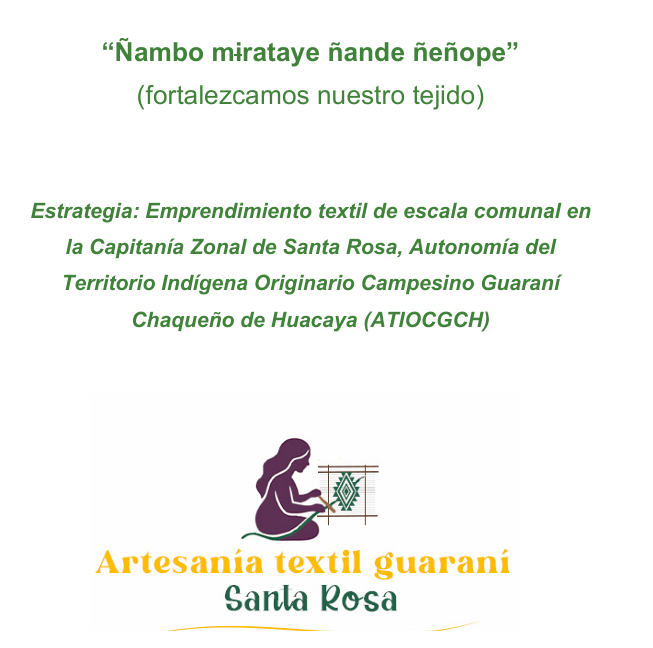 Este documento plantea una estrategia para fortalecer el emprendimiento de textil guaraní con perspectiva comunal en la comunidad de Santa Rosa, considerando procesos de formación, organización comunitaria y dinamización de mercados, con especial atención a la sostenibilidad de saberes y prácticas tradicionales. Ver aquí.