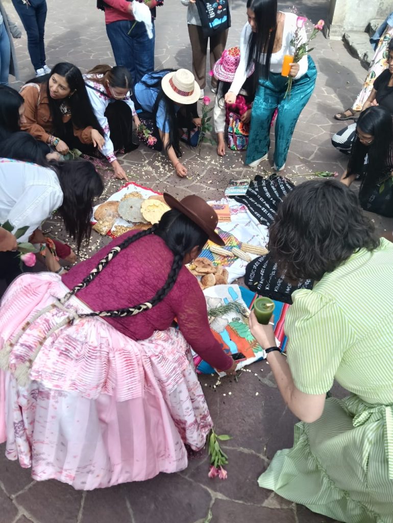 El primer día realizamos un ritual de bienvenida con todas las compañeras. El ritual nos enseñó a agradecer por la vida, la tierra, el sol, el aire que respiramos; y además, algo importante fue el mensaje de aprendizaje de recordar a nuestros abuelos, abuelas y ancestros que nos dejaron enseñanzas y respeto por la vida y la Naturaleza.